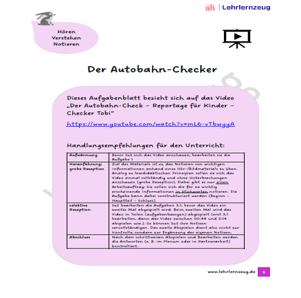 Beschreibung: Das Material ist der Kategorie "Hörverstehen" zugeordnet und basiert auf dem Youtube-Video "Autobahn-Checker".